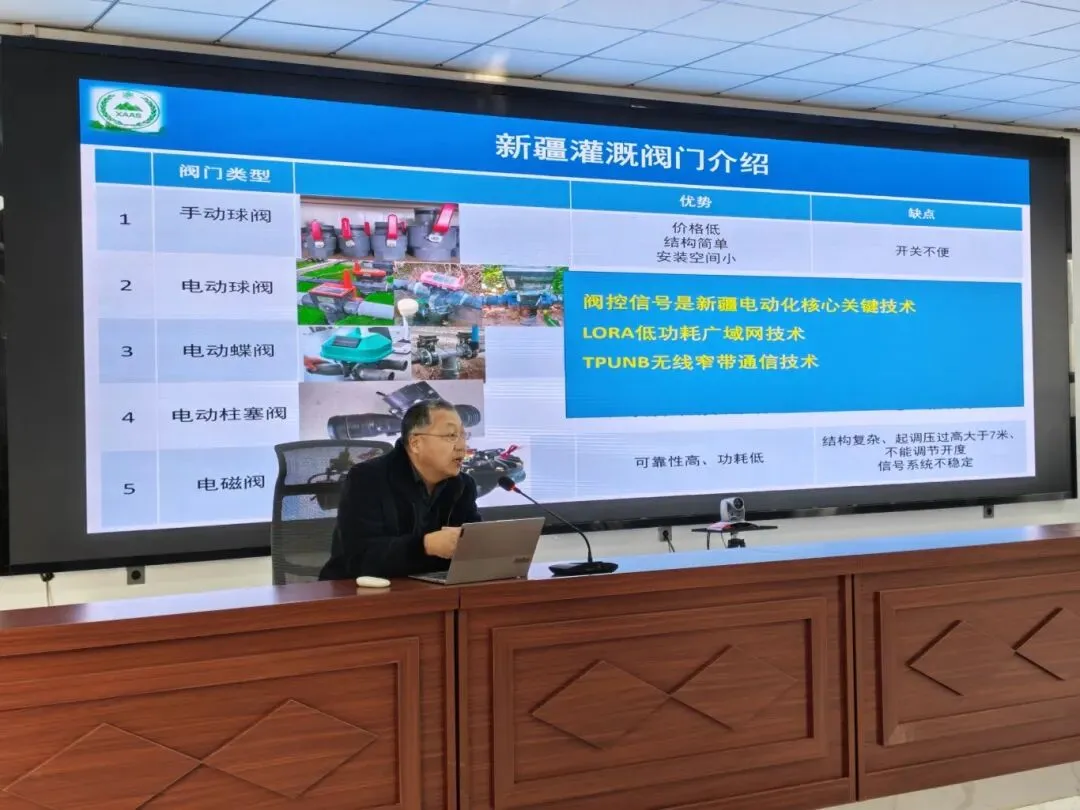 培训中,自治区农科院专家围绕节水灌溉技术、机电井基础设施维护与养护、灌溉设备选材等核心内容展开系统讲解。专家结合新疆农业生产实际,通过 PPT 演示、案例分析等方式,详细介绍了不同灌溉阀门的类型、优势及应用场景,为基层推广高效节水灌溉提供了技术支撑。同时,专家还就辣椒等特色作物产量测定方法进行实操指导,通过田间采样、数据测算等环节,让参训人员直观掌握科学测产技能。