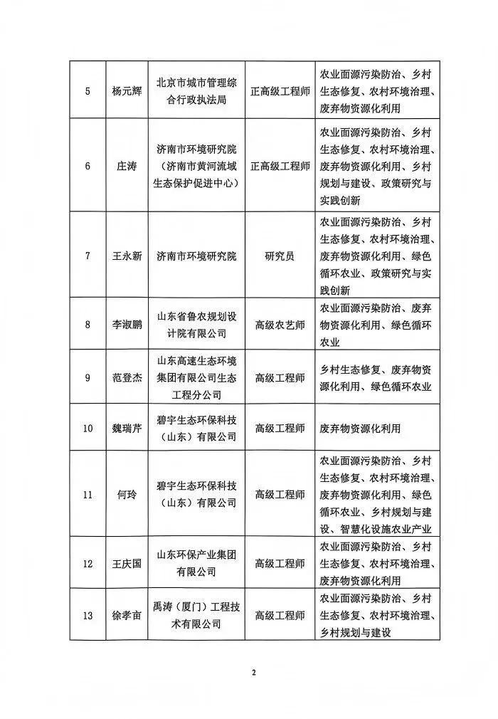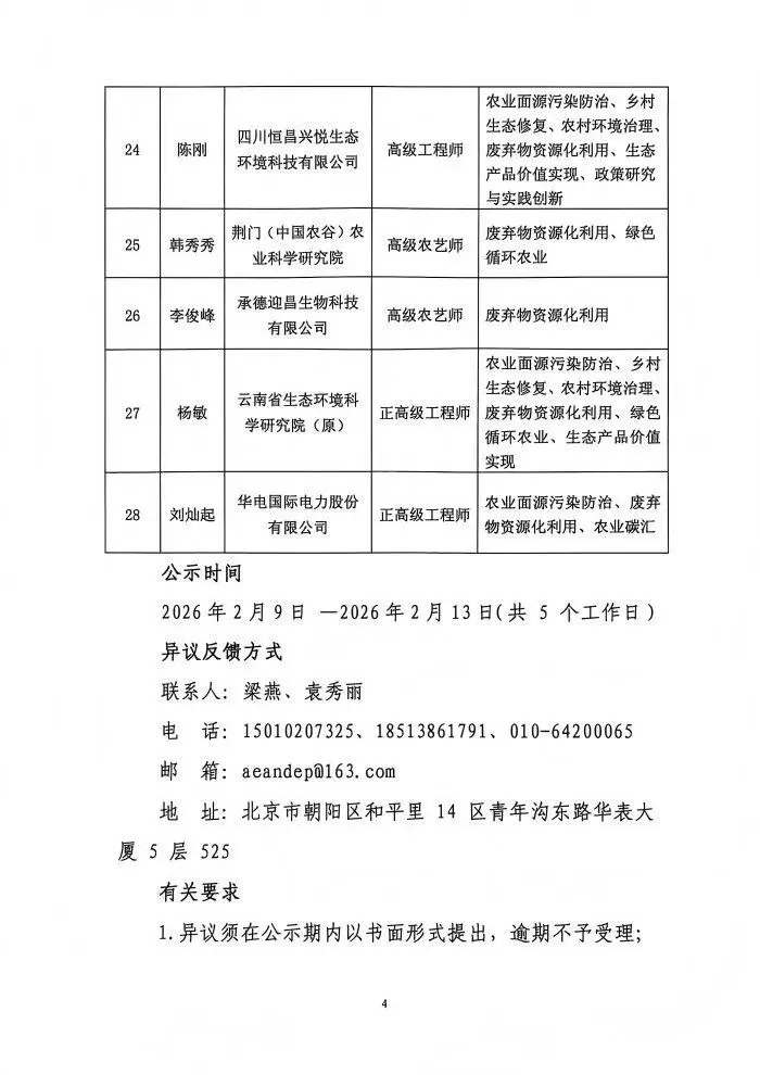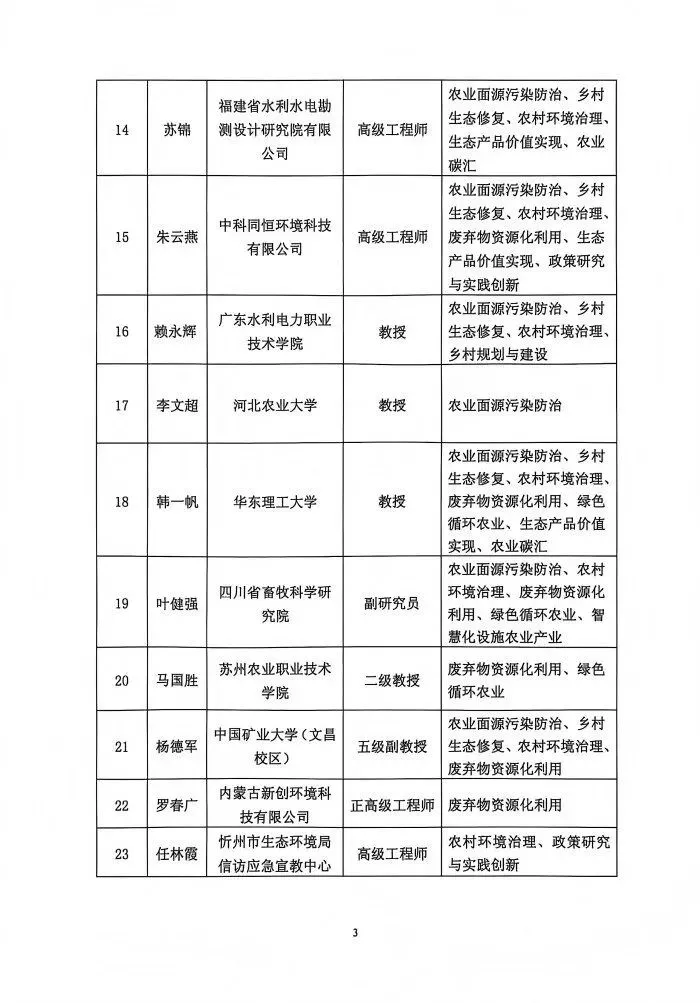 >中华环保联合会农业生态环保与乡村振兴专委会拟聘任专家公示名单