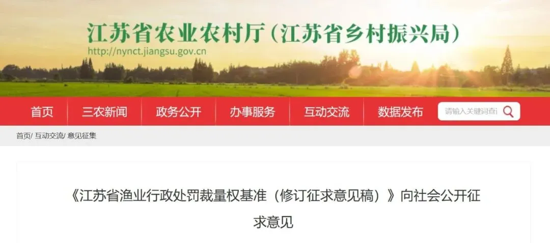 现就《江苏省渔业行政处罚裁量权基准(修订征求意见稿)》向社会公开征求意见建议,公众可在2026年3月2日前通过以下方式提出意见: