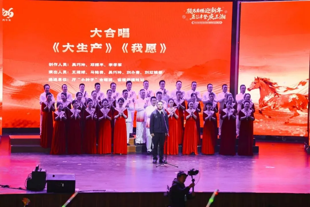 凯歌辞旧岁,骏马迎新春。省农业农村厅于2月9日举办“骏马奔腾迎新年 五谷丰登庆三湘”迎新春联欢会。厅党组书记、厅长,省乡村振兴局局长(兼)王建球出席联欢会并致辞。全体厅领导、厅机关处室和厅直单位干部职工代表,离退休老同志和干部职工家属代表欢聚一堂,共迎丙午马年新春佳节,现场暖意融融、喜庆祥和。