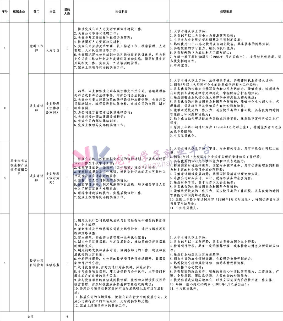 附件:黑龙江省农业投资有限公司权属企业市场化选聘岗位及要求.xlsx