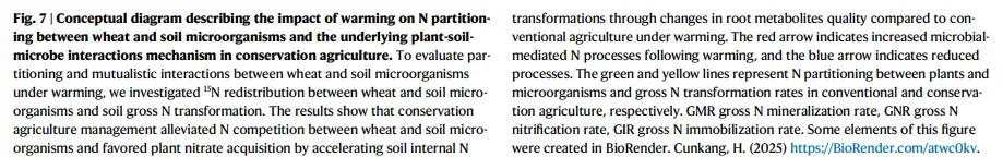 最后,我们的研究表明,通过保护性农业管理来操纵植物-土壤-微生物之间的相互作用,对于能够抵御气候变化带来的挑战的作物生产具有巨大的潜力。