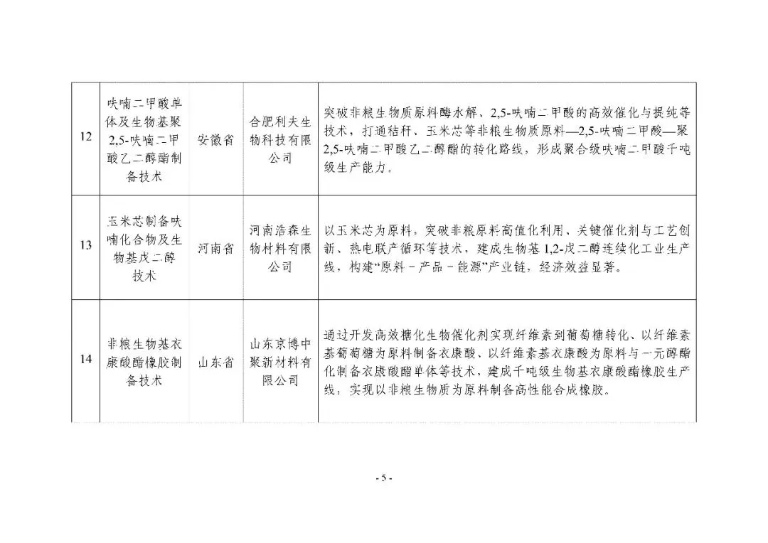 工信部农业农村部:关于公布非粮生物基材料产业创新发展典型案例的通知