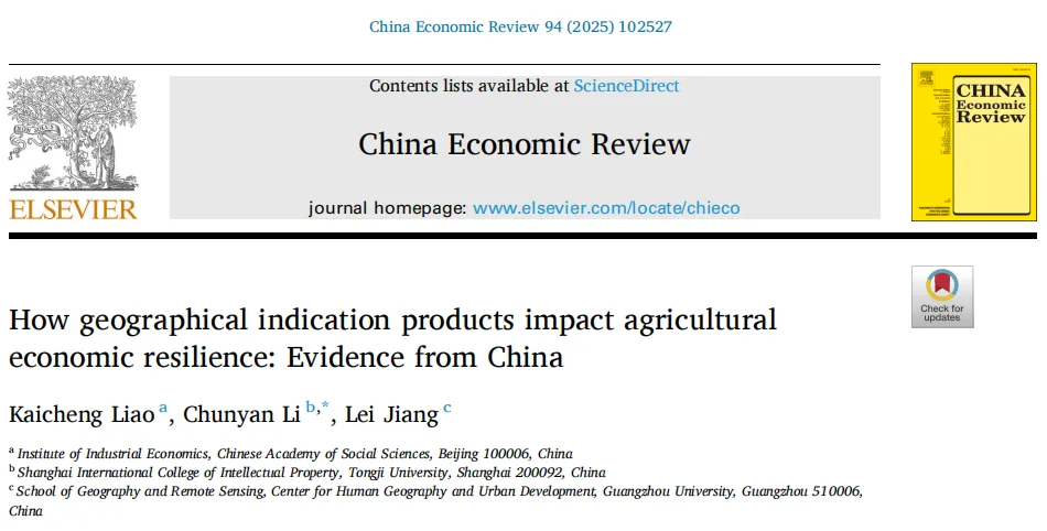 Liao, K., Li, C., & Jiang, L. (2025). How geographical indication products impact agricultural economic resilience: Evidence from China. China Economic Review, 102527.