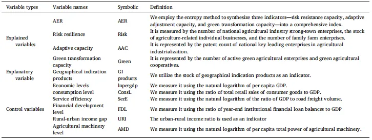 总体而言,GI产业的集聚通过选择、集聚和回流效应,改善了农业流程。集聚为增强农业经济韧性提供了强大动力。基于此,本研究提出以下假设: