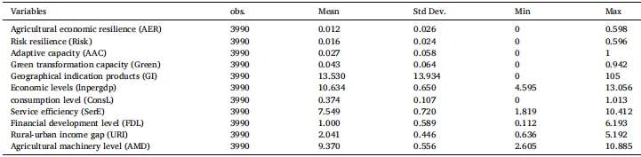 上述研究为本研究奠定了重要基础。然而,就研究内容和视角而言,尽管韧性概念已初步引入农业经济学领域,但仍处于早期探索阶段。先前研究大多聚焦于地理标志产品本身,忽视了其对AER的潜在影响。在全球日益重视AER以应对可持续发展挑战的背景下,各国政府正积极采取措施增强农业经济抵御内外部风险的能力。作为关键的知识产权和市场工具,地理标志在增强AER方面的作用已成为当前高质量发展阶段亟待深入探索的课题。因此,本研究将地理标志产品纳入影响AER的因素分析框架中,旨在探讨:地理标志产品的存在是否显著促进AER的提升?哪些因素调节地理标志产品对AER的影响?评估地理标志产品作为增强AER支柱的潜力,对于未来政策制定和实施具有重要的理论和实践意义,这些政策旨在培育农业韧性、促进可持续发展。