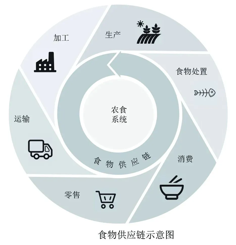 农食系统的核心组分有农业生产资料,包括食品在内的农产品的生产、加工、流通(包括运输和批发等)、销售、消费以及废弃物的处理等7个方面,在食物地理研究中的“食物系统”则主要包括食物的生产、加工、流通、销售和消费等5个方面。农食系统是全链条、多主体的系统圈层,涉及领域广泛,在保障粮食安全和居民营养健康、促进人类繁荣方面至关重要,不仅为人类提供所需要的热量和营养物质,还是小农、涉农中小企业、小餐饮从业者等群体的生计基础。对于农食系统的组成,不同学者和研究有不同的表述,但主要还是以农食系统的核心组分为基础加以扩展,如相关的科研活动、资源环境、政策制度、相关主体、活动影响(主要是生产和消费活动对资源环境等的影响)。食物系统本身也与其他系统相互关联。
