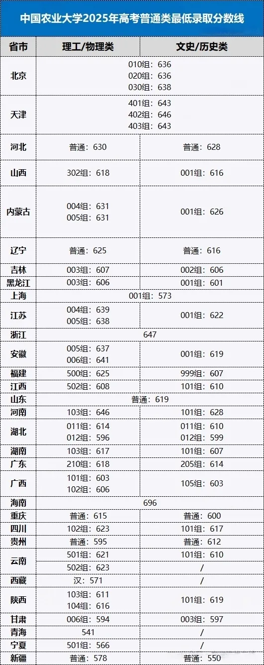 小帆根据中国农业大学官网公布的数据,为大家汇总整理了的中国农业大学2025年各省市高考普通类录取分数线,供各位考生家长参考。
