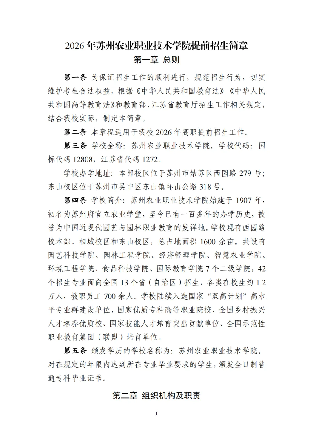 >高职单招|苏州农业职业技术学院2026年提前招生简章
