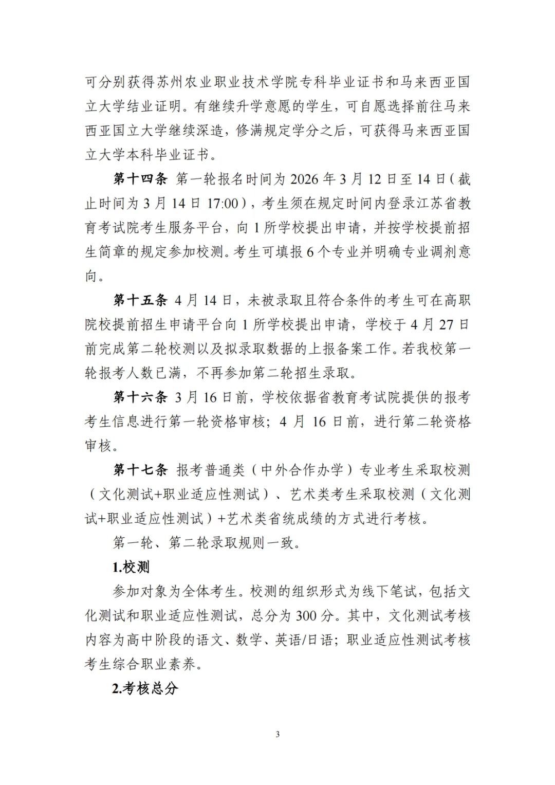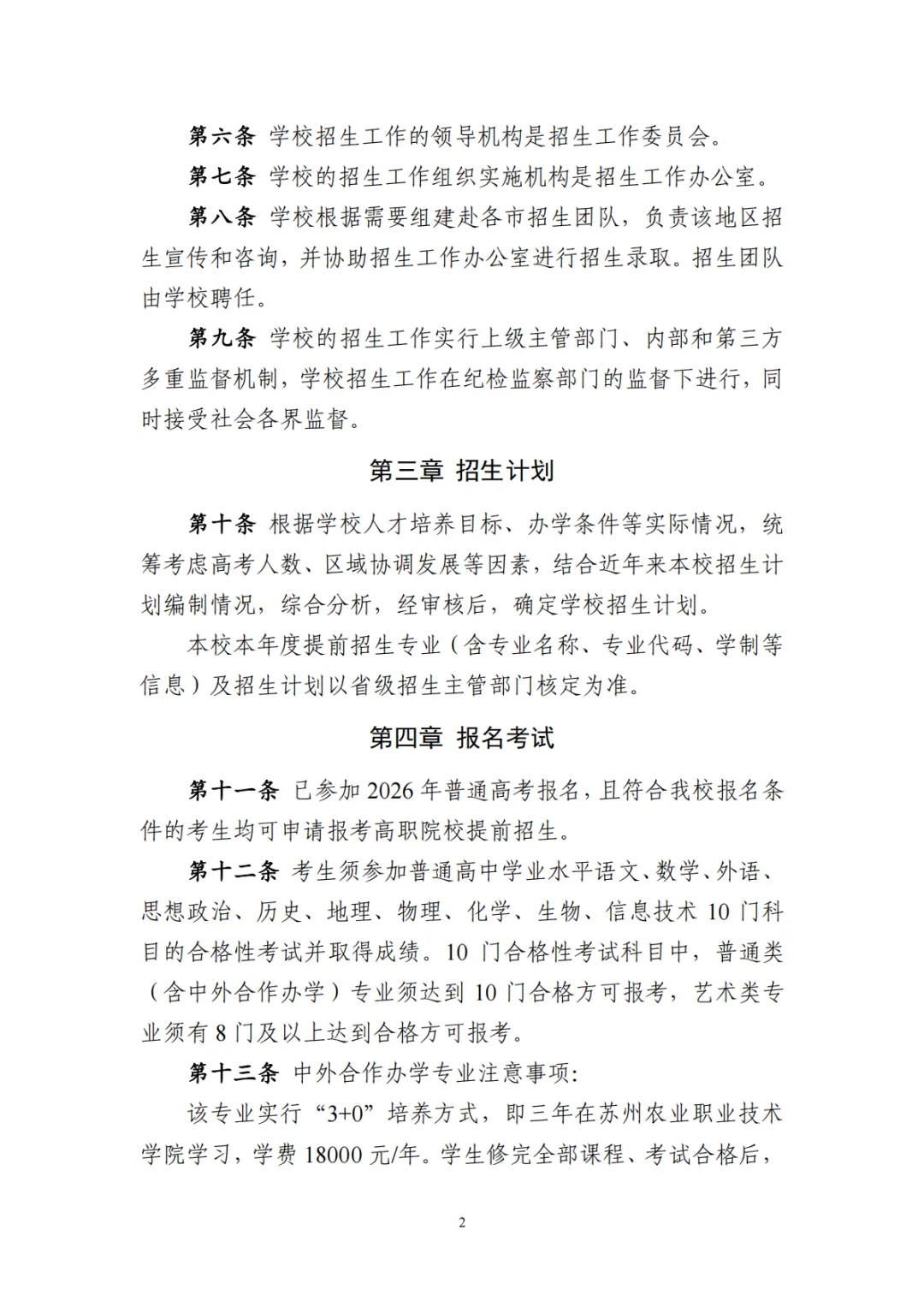 高职单招|苏州农业职业技术学院2026年提前招生简章