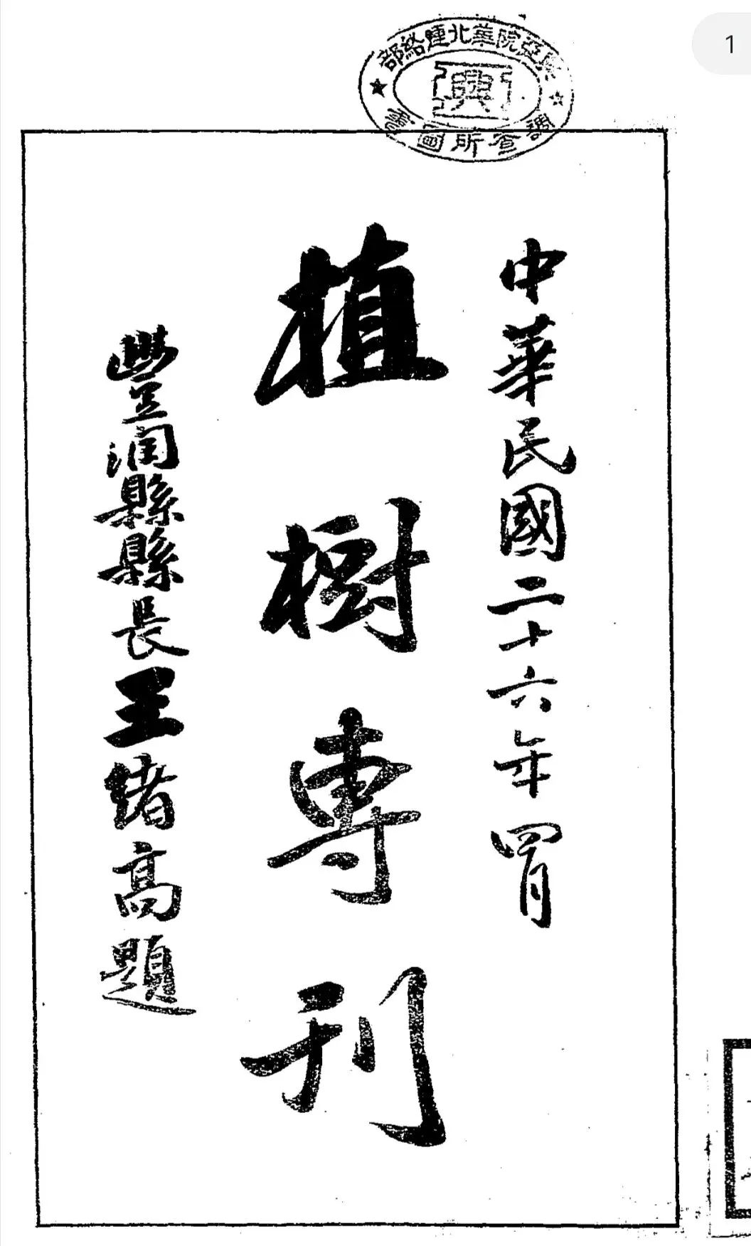 丰润县农业推广所植树专刊,民国二十六年。