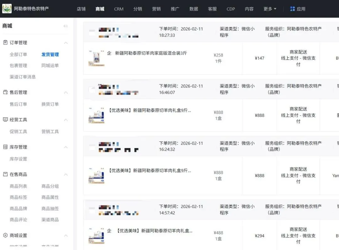 通过大力建设代理商体系,有效拓展了私域流量,也持续放大了品牌影响力,逐步构建起覆盖全国的销售网络。目前,“泰农生鲜”的客户已遍及大江南北,南至三亚、广州,北抵哈尔滨,西达内蒙古,羊肉产品在各地市场均收获积极反响。伴随小程序上线与持续迭代,线上复购率稳步攀升。截至目前,复购订单已达48单,展现出强劲的用户黏性与市场认可度。