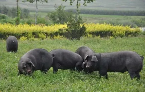 6、放养时间:每天保证8-10小时,让黑猪自由采食牧草、昆虫,提升肉质紧实度;黑猪放养期为6-7个月,每天增重300-400g,体重达到100-120kg时及时出栏;