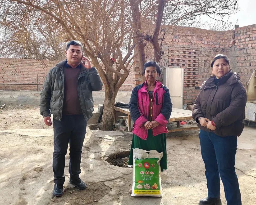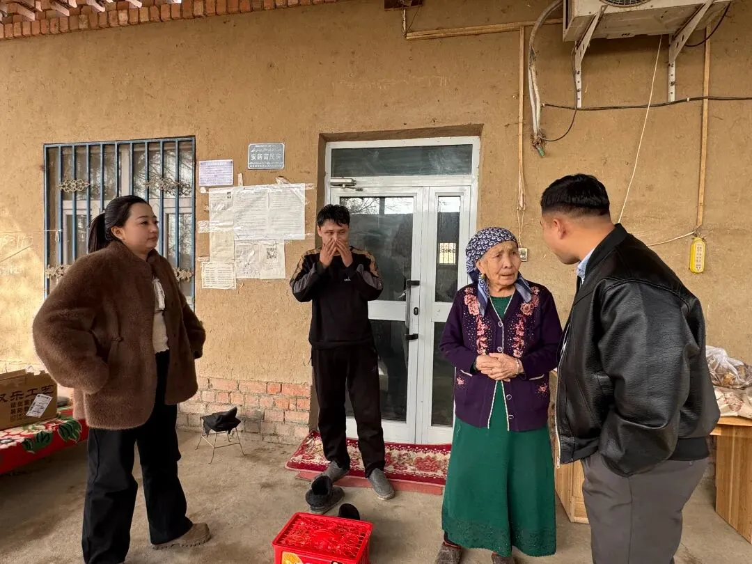 新春佳节将至,为深入践行民族团结一家亲理念,有效铸牢中华民族共同体意识,扎实推进“今冬明春”基层组织建设“五大行动”走深走实,切实把党和政府的关怀送到各族群众心坎上,近日,琼库勒村后盾单位市农业农村局,组织干部携手驻村工作队、村“两委”干部深入村内开展春节前走访慰问活动,为群众送上水果、面粉、鸡蛋等慰问品与新春祝福。