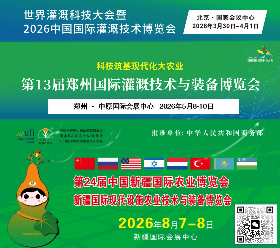 “世界灌溉科技大会暨2026中国国际灌溉技术博览会”定于2026年3月30日至4月1日在北京国家会议中心举办。展会以 “全球智慧农业盛宴与技术探索” 为主题。展出面积3万平方米,将吸引来自美国、德国、荷兰、澳大利亚等30余个国家的800余家领军企业参展,超过3.5万人次的专业观众。
