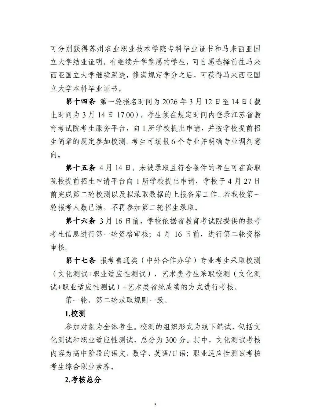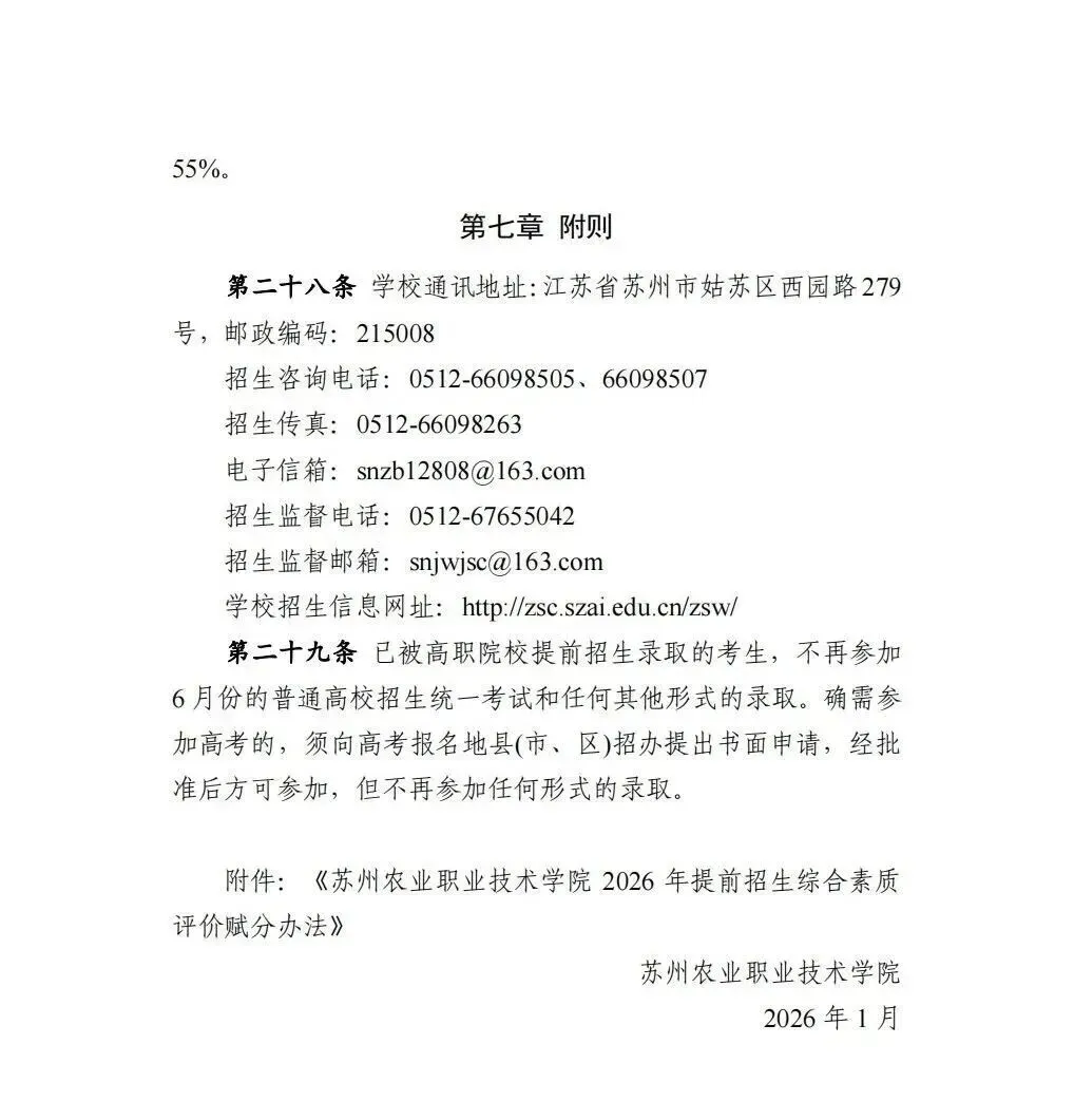权威发布|苏州农业职业技术学院2026年提前招生报考指南