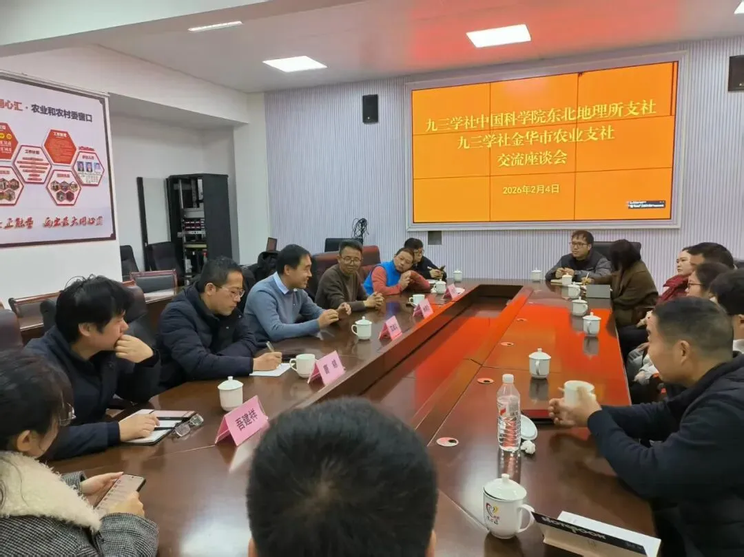 近日,九三学社中国科学院东北地理与农业生态研究所支社主委文波龙研究员一行赴金华开展调研交流。九三学社金华市委员会专职副主委曹锦、农业支社委员会主委吾建祥参加调研座谈。