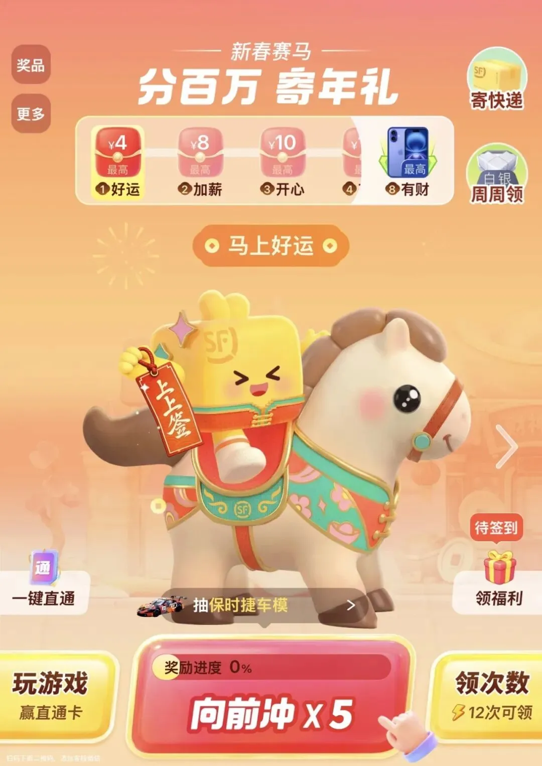 免费领888寄件礼包,每周可领1次赛马游戏闯关