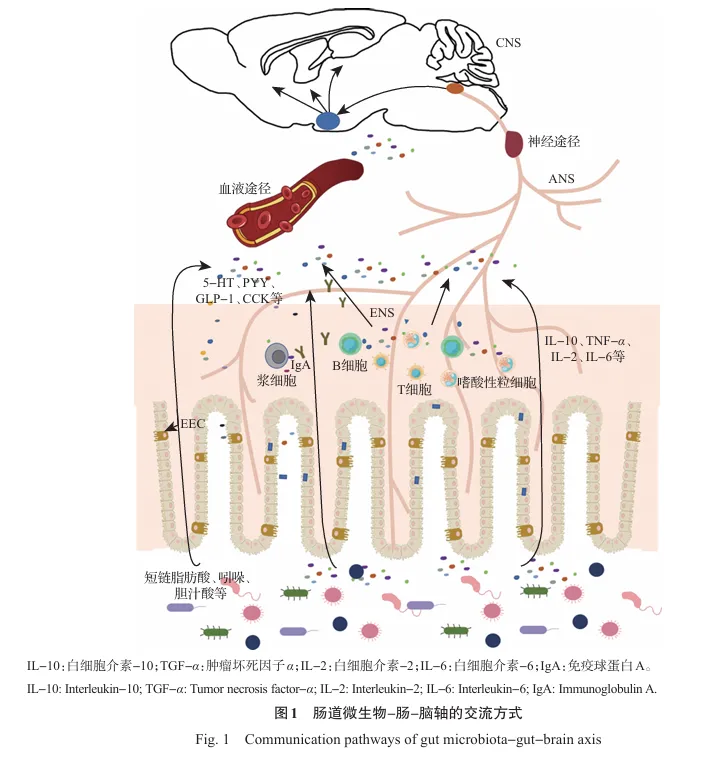 肠道微生物-肠-脑轴是肠道微生物群、肠道及中枢神经系统三者所构建的双向通信信号轴。该信号轴具有高度的复杂性,深度参与并调控多个生理过程,在维持机体健康方面具有重要的作用。诸多研究均已证实,肠道微生物能够凭借神经传导、内分泌调节、免疫应答及代谢作用等多种途径,与大脑建立起密切的信息交互连接,实现双向信号传递。当肠道微生物-肠-脑轴功能失衡和发生紊乱时,可能引发消化系统、神经系统及代谢系统等多种疾病。鉴于此,肠道微生物-肠-脑轴作为极具潜力的机体健康调控靶点,已成为当前生命科学领域的研究热点。本文聚焦于肠道微生物-肠-脑轴,系统梳理并总结其在健康调控方面的前沿研究动态与阶段性成果,旨在为相关疾病的预防与治疗提供新的突破路径与创新视角。