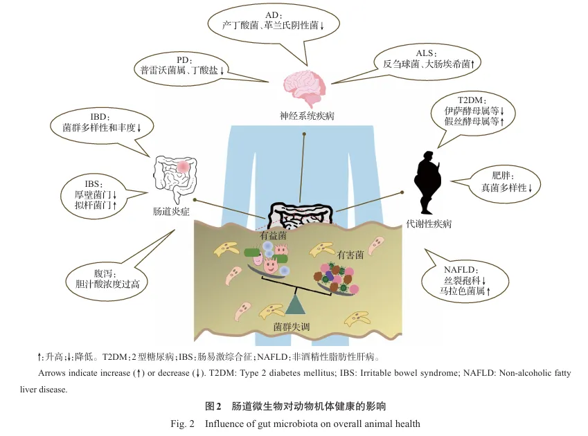 近年来,肠-脑轴因在机体健康调节及疾病发生发展中的关键作用,以及作为潜在治疗靶点的重要价值,受到了广泛关注。越来越多的前沿研究强调,肠道微生物通过肠-脑轴对动物机体健康产生多种影响,包括神经系统疾病、肠道炎症和代谢性健康等领域。在这一复杂的双向通信系统中,肠道微生物以直接或间接的方式与机体各系统建立紧密联系,并将信号精准传递至中枢神经系统(central nervous system, CNS)。该过程依赖于微生物代谢产物和神经递质,包括抗菌肽、肠道激素、细胞因子和神经活性物质等,凸显了肠道微生物群在维持这种双向交流中的重要作用。反之,大脑也可以通过神经和神经内分泌系统调节胃肠道蠕动、微生物群组成及维持内环境平衡。此外,肠道微生物组成的变化会影响肠道屏障的完整性、内分泌系统的稳态及血脑屏障的通透性等功能,其失调可能与神经发育障碍等多种神经系统疾病的发生相关。尽管研究已取得显著进展,但肠道微生物作用于CNS的内在机制尚未完全阐明。因此,本文系统综述了肠道微生物与CNS的信号交流及其对动物机体健康的影响,以期为该领域的深入研究提供理论依据。