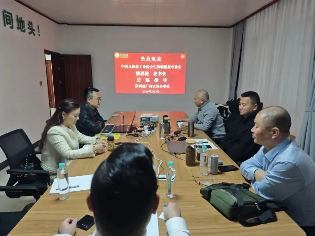 2026年2月7日,熊思健秘书长莅临江苏欣利盛生物科技有限公司位于广西宜州的办事处指导工作,内容围绕生物刺激剂的现状、发展趋势、市场机会等展开,强调了生物刺激剂在逆境下提高作物产量、增强抗逆性和改善品质的作用。自生物刺激剂概念引入,继而中国生物刺激剂发展联盟成立,会员从20多家发展至100多家,核心企业超过50家,显著推动了生物刺激剂行业交流与合作,促进了行业快速规范发展。