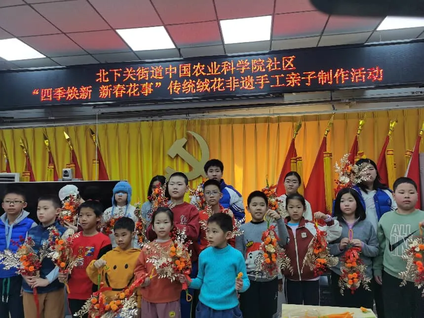 为传承非遗技艺之美,传递新春福气与邻里温情,让传统手工艺在家庭生活中焕发活力,2026年2月12日,中国农业科学院社区开展“四季焕新 新春花事”传统绒花非遗手工亲子制作活动,辖区多组家庭如期参与,在指尖实践中传递新春祝福,感受非遗魅力。