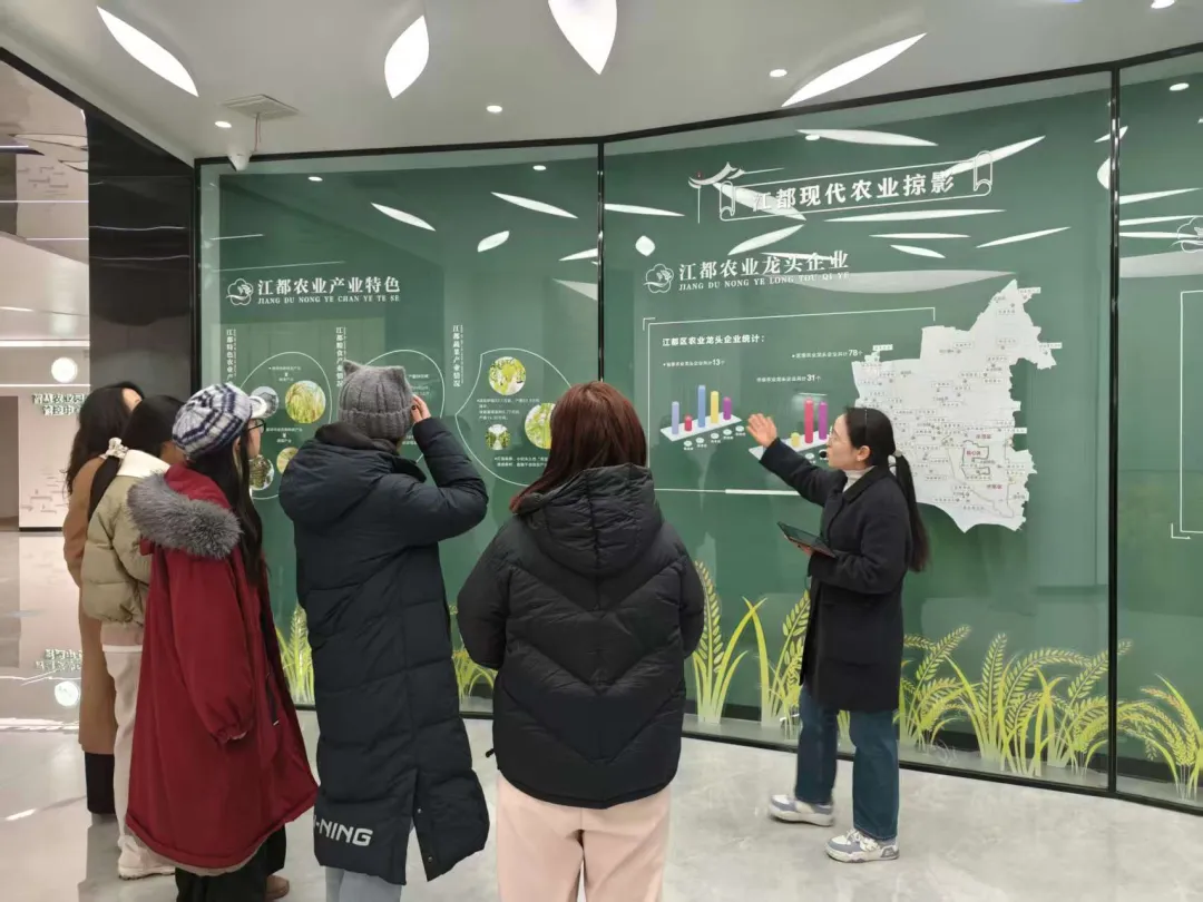 2月9日,局相关负责同志带队赴江都现代农业产业园开展现场学习。在园区智慧展厅里,“定制新农干”学员坐上5D动感座椅模拟穿梭田野,沉浸式感受江都农业的蓬勃脉动;操作收割机模型,亲身体验水稻从收割到装车的过程;观看智慧大屏和绿色墙面,细致了解江都农业产业特色优势、龙头企业分布以及园区发展历程。