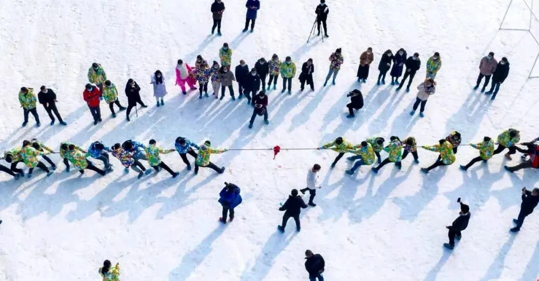 绳子两端,是紧紧靠在一起的伙伴。呐喊声、欢笑声、助威声,还有倒在雪地时扬起的雪花,成了冬天里最温暖的画面。