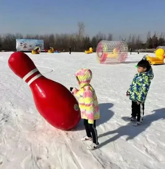 圆滚滚的球,轻轻一推应声倒下。无需技术,不用力气,每一次清脆的撞击,都在雪地上绽开一朵小小的快乐。