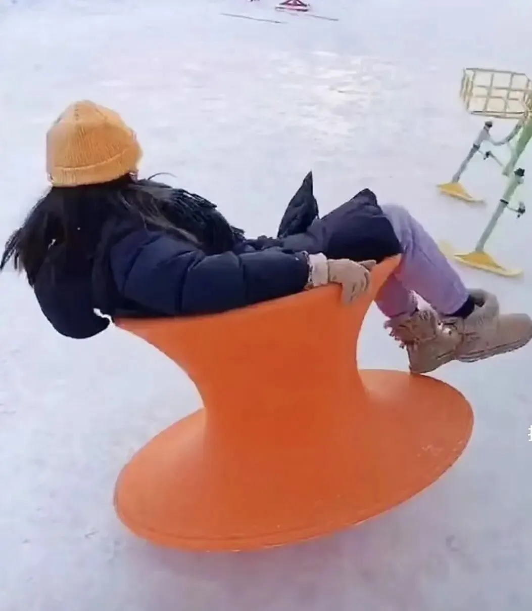 坐上会转的雪圈,随着圆盘轻轻旋转,世界在眼前温柔地打转。灯光、雪影、欢笑的脸,像掉进了一个慢放的梦境。
