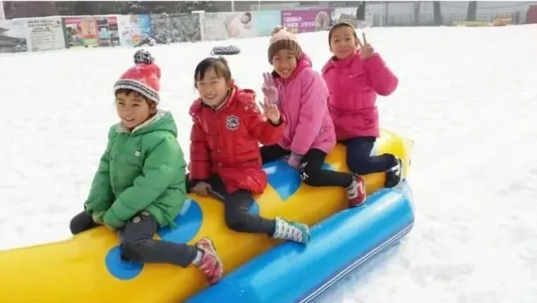 几人坐成一串,像一串快乐的香蕉,在雪地被划出一道欢快的弧线,清脆的笑声如铃铛般洒落,成了这场雪上航行最轻盈的配乐。