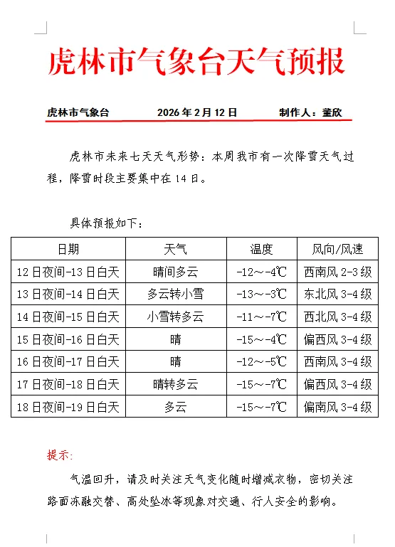 天气变化 请注意预防