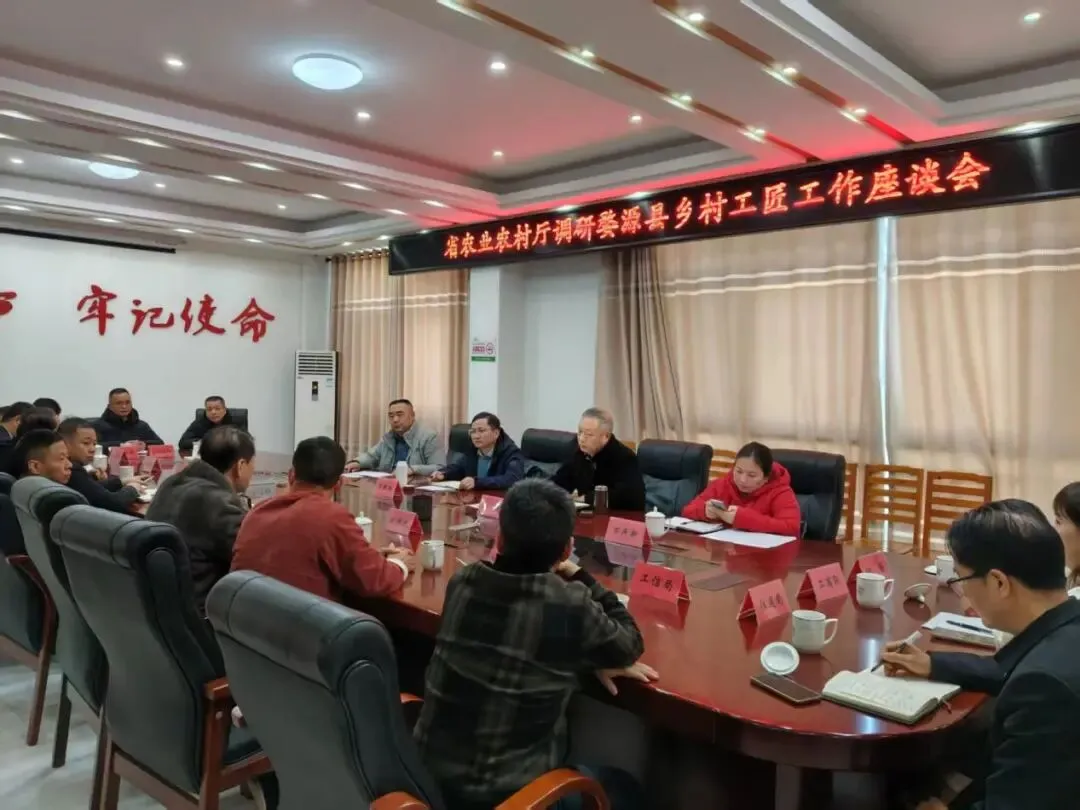2月11日,省农业农村厅帮扶处处长曾毅佳、二级调研员赵健在我县调研乡村工匠工作。市农业农村局二级调研员王仁辉,县委常委、统战部部长黄先河陪同。