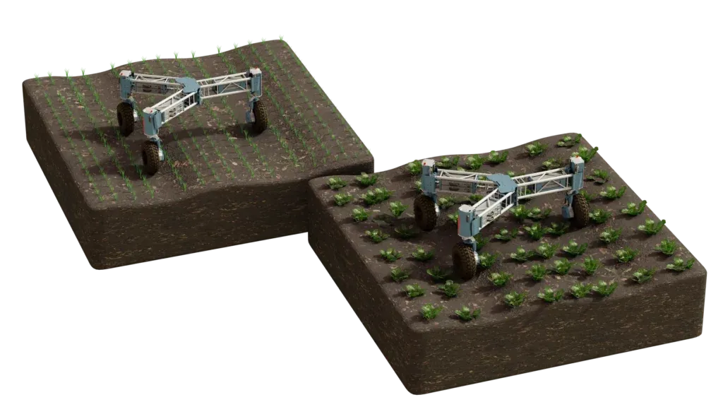 E-TERRY的标志性特征是专利超灵活三轮底盘,这一设计使其能适配几乎所有行间距与作物类型——无论是窄行距的草莓田,还是宽行距的玉米地,均能灵活穿梭。这种灵活性尤其契合多样化种植系统(如有机农业、再生农业),因有机种植要求减少土壤扰动,而再生农业强调生态系统恢复,E-TERRY的低侵入式设计完美匹配这些需求。