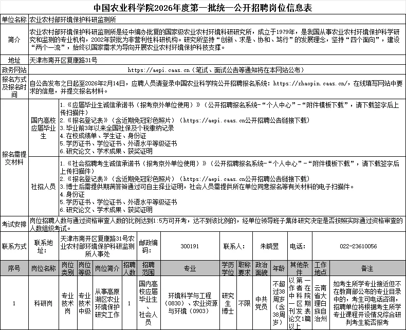 1-中国农业科学院2026年度第一批统一公开招聘岗位信息表-京内单位