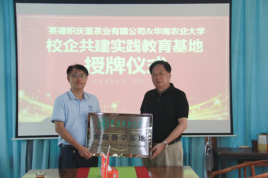 7月11日,华南农业大学实践教学基地授牌仪式在英德积庆里茶业有限公司茶叶基地-积庆里红茶谷举行。华南农业大学华南农业大学园艺学院副院长曹藩荣及多名教授、积庆里茶业执行总经理范彦平等人出席。