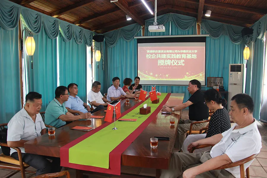 仪式上,双方交流洽谈,并进行授牌。积庆里茶叶种植生产基地-积庆里红茶谷正式成为华南农业大学实践教学基地。早在2018年,积庆里红茶谷即已成为华南农业大学园艺学院的实践教学基地,如今成为华南农业大学的实践教学基地,这是双方合作的升级。