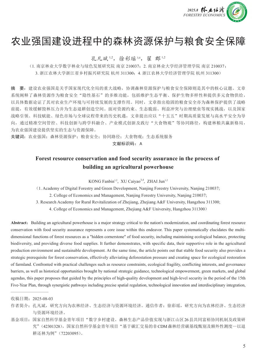 【数字生态与绿色发展学术团队】农业强国建设进程中的森林资源保护与粮食安全保障.pdf