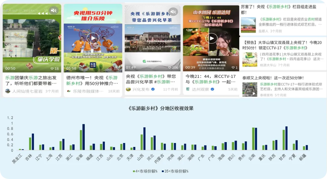 栏目开播以来从各个维度展现当地的风土人情,乡村发展,受到地方文旅的广泛热推。在全国各省份特别是吉林、江苏、安徽、山西、河北、云南、陕西和甘肃等地市场份额较好。