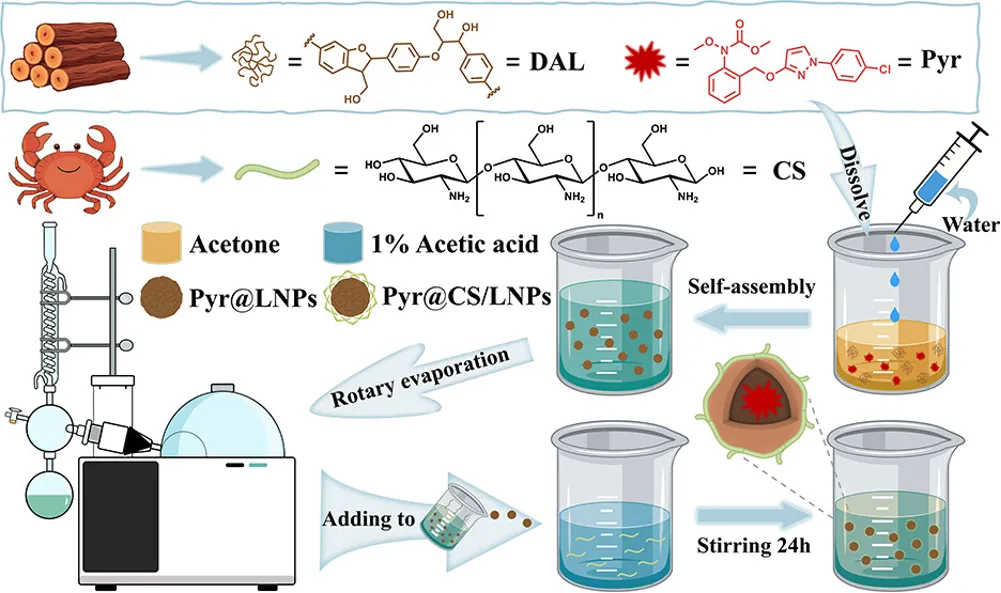 关键词:木质素;壳聚糖;纳米颗粒;漆酶响应型释放;叶面附着力;双向转运