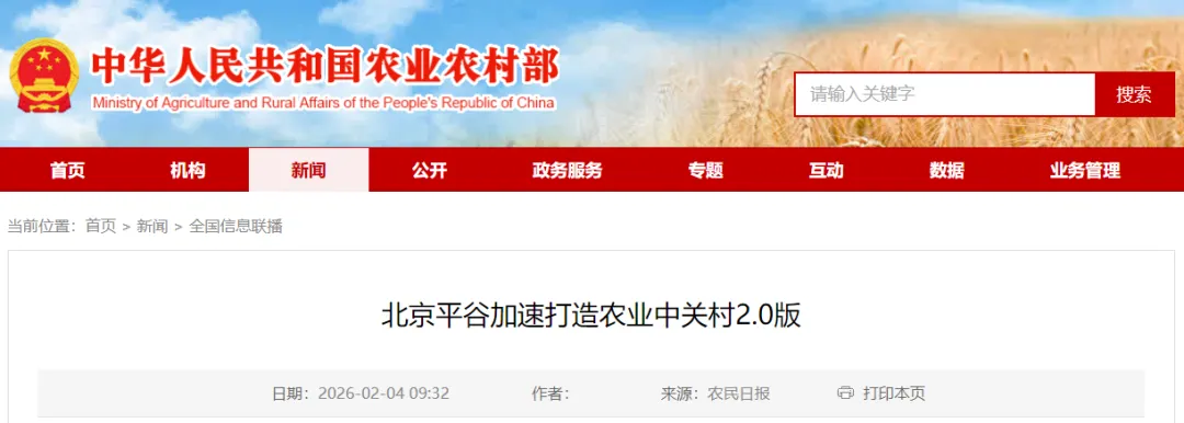 平谷区副区长彭石介绍,2026年,该区将以谋划创建国家农高区为引领,抓好大兴庄、峪口、马昌营三镇协同发展,持续推进洳河畔农科城建设,充分发挥农业中关村的集聚优势,为首都乃至全国的农业现代化贡献平谷力量。