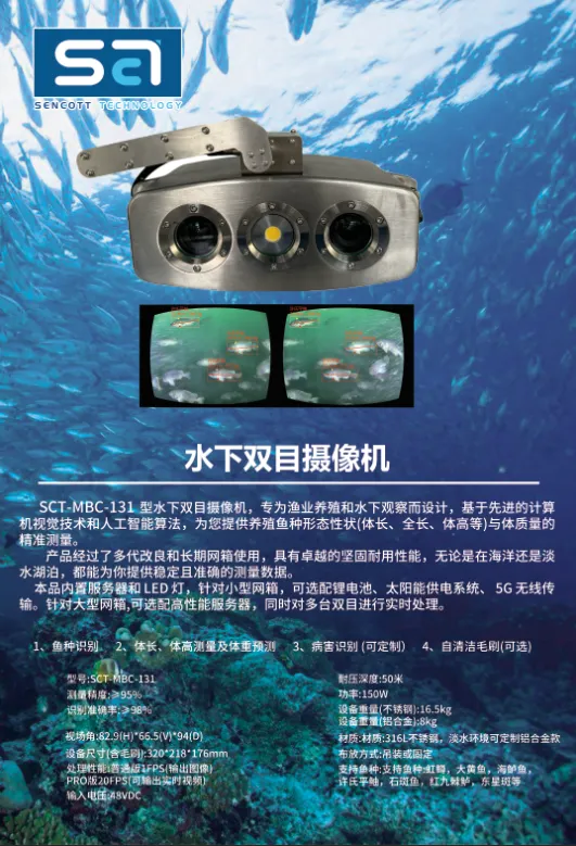 青岛森科特智能仪器有限公司成立于 2015 年,位于风景秀美的青岛蓝谷,主要研发、生产海洋观测设备、水下智能作业装备,致力于透明海洋、智慧深远海渔业的建设。公司深耕于深远海人工智能作业装备领域,掌握物联网技术、水下图像、人工智能等核心技术。公司研发、 生产的海洋、湖泊立体剖面观测系统国内领先,多项技术填补国内空白;海上雷达光电系统、气象观测系统、剖面观测系统、水下照明、水下摄像等产品广泛应用于全国国家级海洋牧场、深远海智能网箱;数字化养殖管理系统、智能作业机器人、水下双目摄像、水下生物监控系统 为深远海智能网箱的无人化作业提供了保障;公司的深远海产品包括万米级信标、深海孔压探 测系统、深海高精度压力计等在东海、南海得到了应用。 目前拥有 23 项发明专利、36 项实用新 型专利、27 项软件著作权。