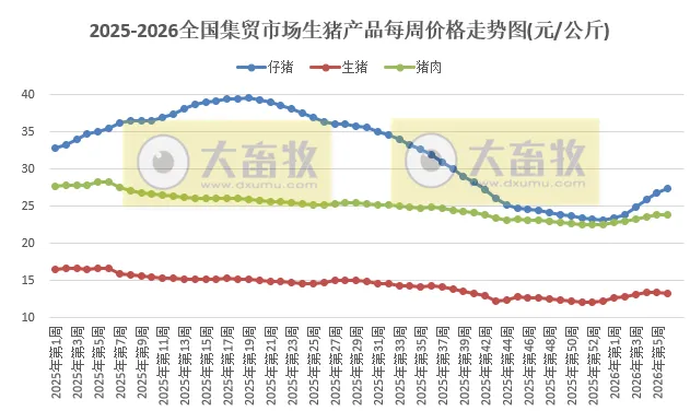全国仔猪平均价格27.39元/公斤,比前一周上涨1.9%,同比下跌23.0%。