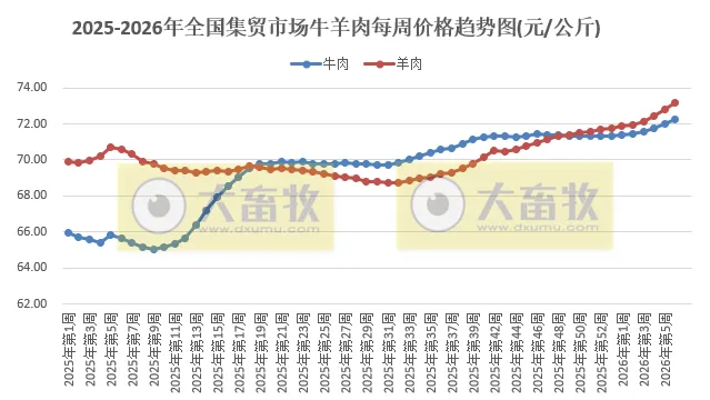 全国羊肉平均价格73.17元/公斤,比前一周上涨0.5%,同比上涨3.7%。