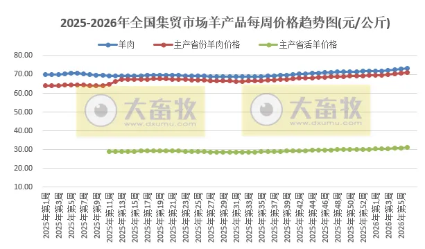 河北、内蒙古等10个主产省份羊肉价格71.09元/公斤,比前一周上涨0.7%。