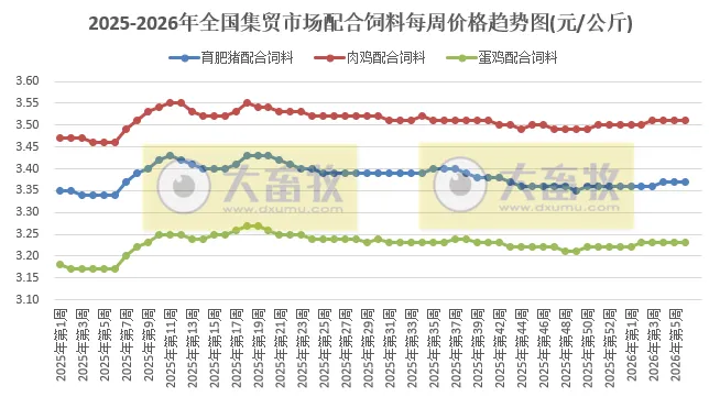 蛋鸡配合饲料平均价格3.23元/公斤,与前一周持平,同比上涨1.9%。