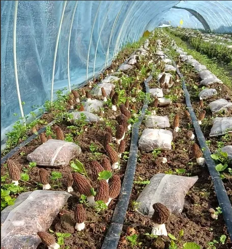 5.温湿度精准管理。发菌期、出菇期是关键阶段,羊肚菌原基分化后,土壤温度控制在“5℃~15℃”,最高不超过16℃;需适时“控温、控湿、控氧、控光”等。