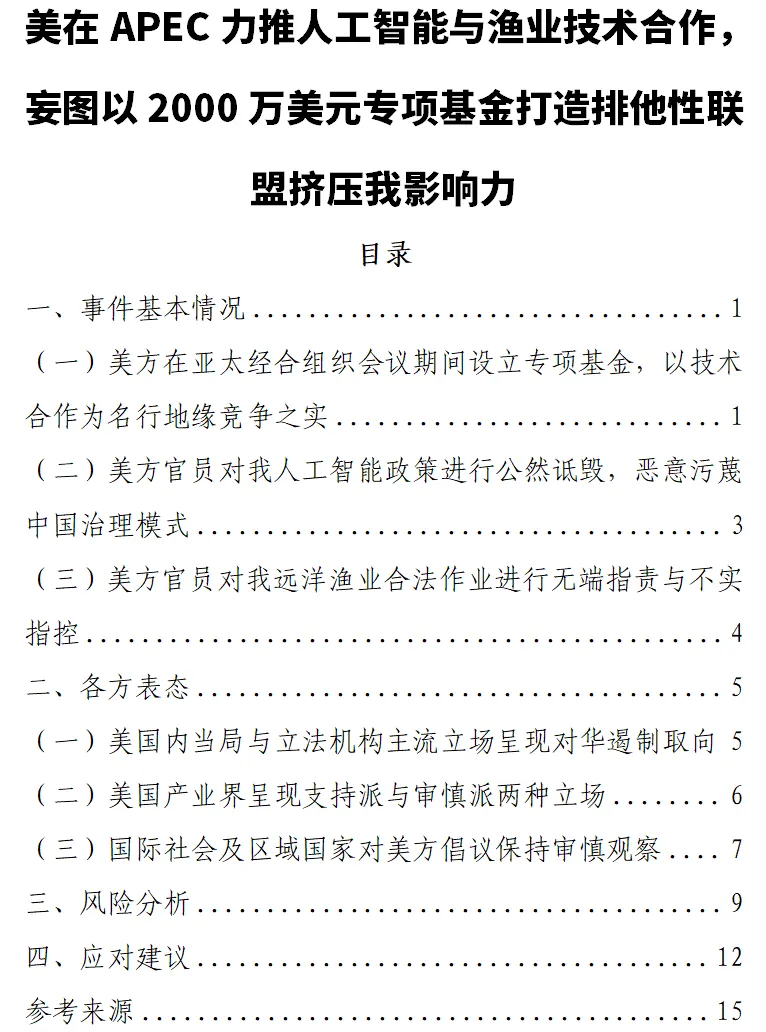 2026年2月12日,路透社证实,美国特朗普政府在位于中国南方举行的亚太经合组织(APEC)会议期间,正推动人工智能出口与海事监控技术,并已启动一项规模达2000万美元的专项基金,旨在支持亚太合作伙伴经济体采用美国人工智能技术。