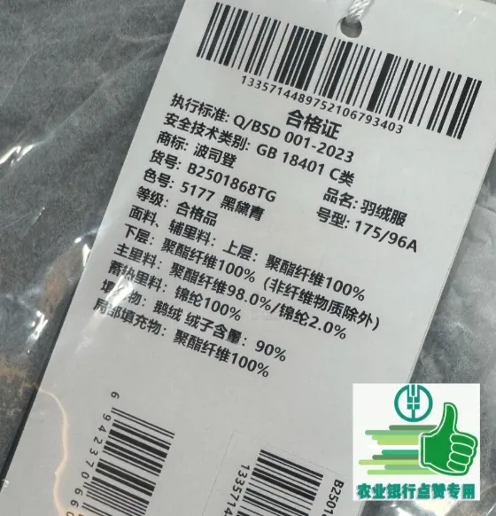 某书@LqAsMu_晒的:中国农业银行沈阳某行收到波司登工服了。