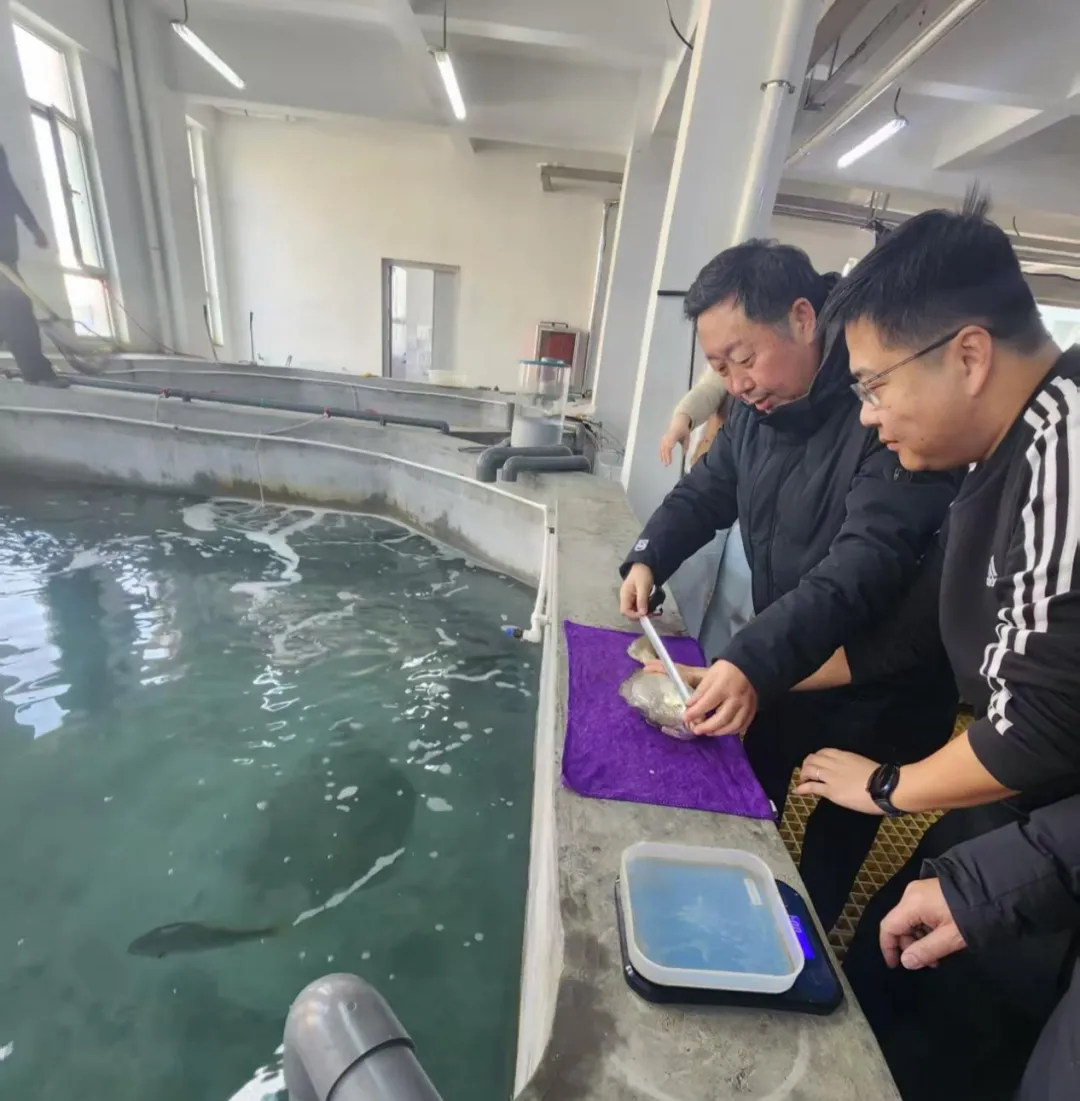 专家组听取了项目工作情况汇报,详细审阅生产记录,实地查看养殖现场,并对大黄鱼生长情况进行抽样测量,认为耐低温品系大黄鱼苗种在日照市工厂化养殖环境中表现良好,生长性能、低温耐受性及经济效益等关键数据翔实可靠,项目各项指标达到预期,一致同意通过验收。